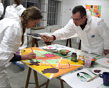 Ob klassische Malerei, experimentelle Wandzeichnung oder interaktive Plakatgestaltung: Wir haben das passende Format für jede(n) TeilnehmerIn und jedes Kollegium; einmalig oder mehrmals regelmäßig.
